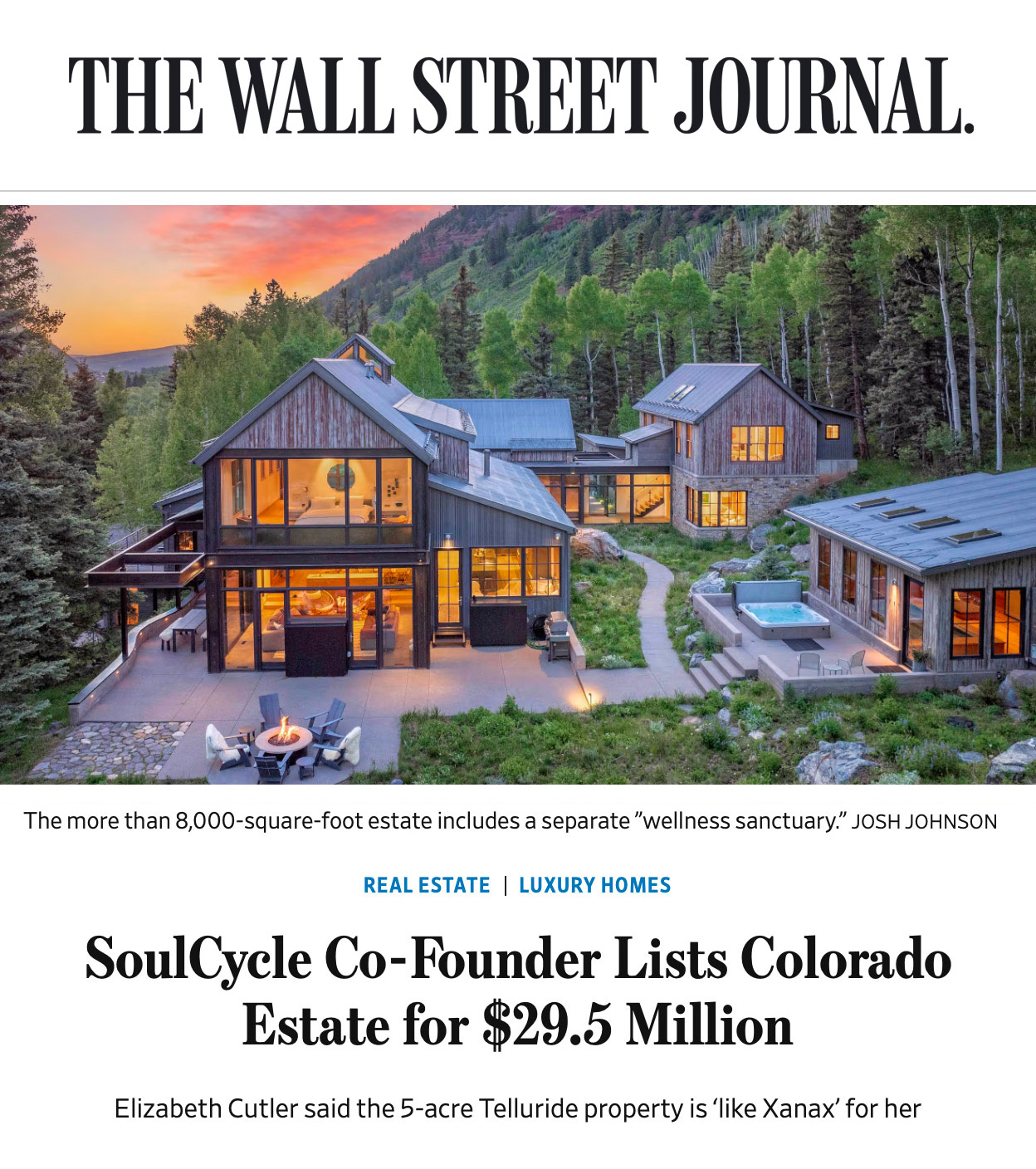 “Elizabeth Cutler thinks of her Colorado estate in the same terms as SoulCycle, the indoor cycling brand  she co-founded in 2006.”  View article in The Wall Street Journal>